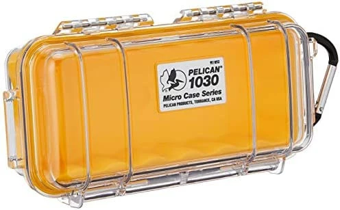 The Pelican Micro Series boxes are nothing short of perfect. I have many of them in various sizes with both black with a clear lid and yellow with a clear lid. Anything that you’d want to protect from getting crushed or wet, then these are what you need. All of the Pelican Micro Series are made of some sort of super-strong plastic. I’m pretty sure you can run them over with your car and they wouldn’t break. They are also completely waterproof with a very tight seal when snapped closed. They come with the black carabiner, but I don’t care for them so I take them off. They also have a small pressure valve on the front to equalize the pressure. The colored rubber insert is also removable if you’d prefer to have just a clear box. Pelican boxes of all sorts are very popular with our military so that should tell you how incredibly strong and just plain great they are.