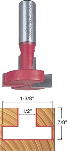 I bought this to make a jig to cut 4 inch dovetail joints on a large board. Mounted in my router table (using the Bosch 1617 EVS), the bit easily cut a t-slot 24 inches long in a 2×4. Then it was a $4 trip to the hardware store to get carriage bolts and wing nuts (make sure the bolts have a square shoulder large enough to catch in the slot so the bolt doesn’t turn). Voila!