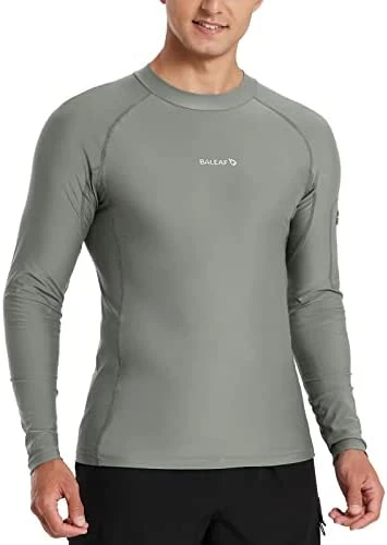 Cheap ๐คฉ BALEAF Men’s Long Sleeve Rashguard UPF 50+ Swim Rash Guard Water ๐ Shirts For ๐ Surfing Diving Kayaking Grey ๐