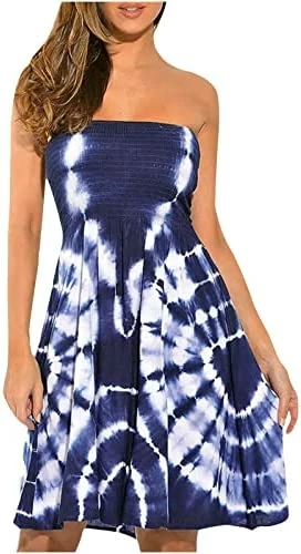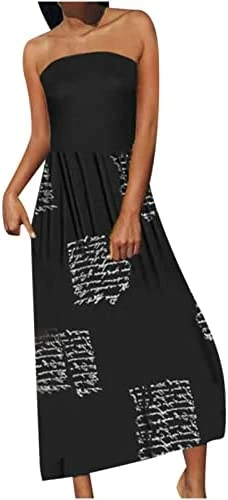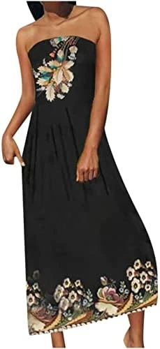Promo 😀 Casual ☀️ Summer 👗 Dress For 👩 Women,Sleeveless Off Shoulder Floral Print 👗 Dress Cocktail Party Swing Flowy Tube Top 👗 Dress White-00 🛒