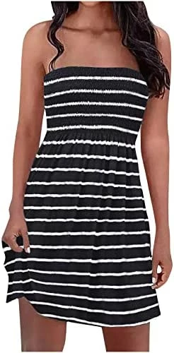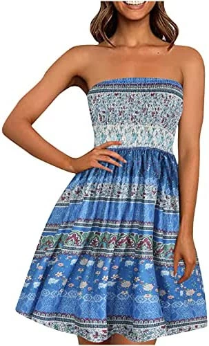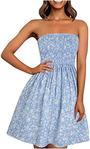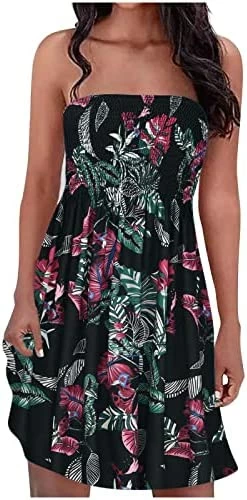 8 reviews for Promo 😀 Casual ☀️ Summer 👗 Dress For 👩 Women,Sleeveless Off Shoulder Floral Print 👗 Dress Cocktail Party Swing Flowy Tube Top 👗 Dress White-00 🛒