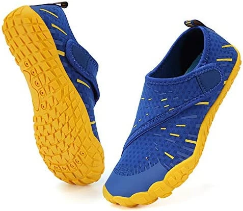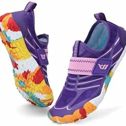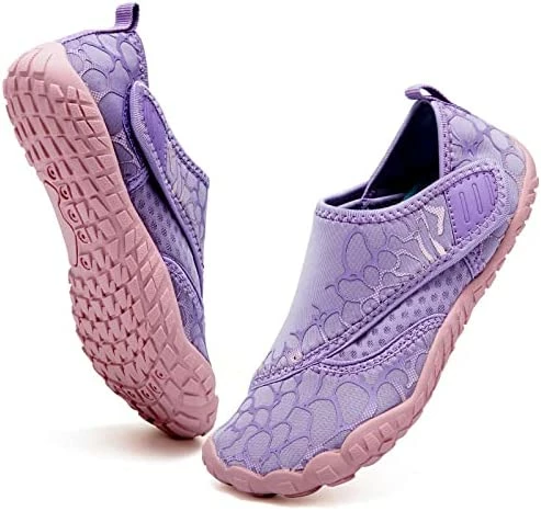 My kids had a summer camp at a place with a splash pad, and they were required to wear closed toe shoes on the splash pad. We have bought other water shoes for they either complain that they rubbed after a while or they complained that they couldnโt get them off easily once their foot was wet. However, this one with the Velcro strap over the top makes it easier to get off on their own once their foot is wet in the middle of the camp day. It also doesnโt slide around and create blisters, as they are running and playing at the splash pad. We did have to order a size smaller than their normal shoe size, though.
