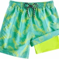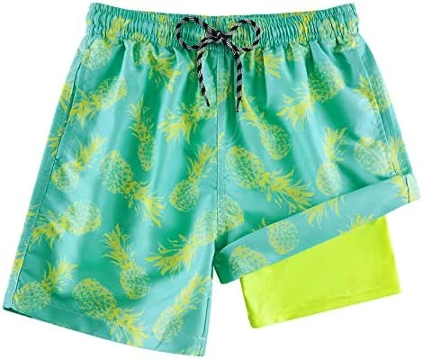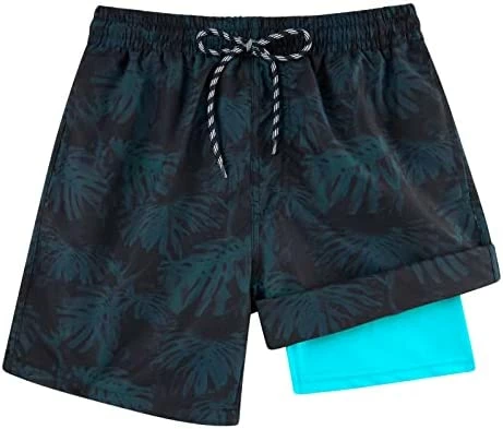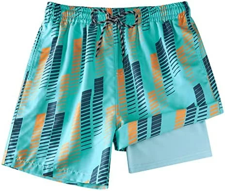 - โค Features: Boys swim shorts are designed with the latest boxer briefs; waterproof, quick-drying, 4-way stretch polyester fabric; a elastic waistband with adjustable drawstring๏ผ double side pockets, one pocket lined in the boxer briefs๏ผ The side seam pockets adopt mesh fabric to facilitate water and sand drain quickly ๏ผallows kids to move freely in the pool, beach, without restraint.