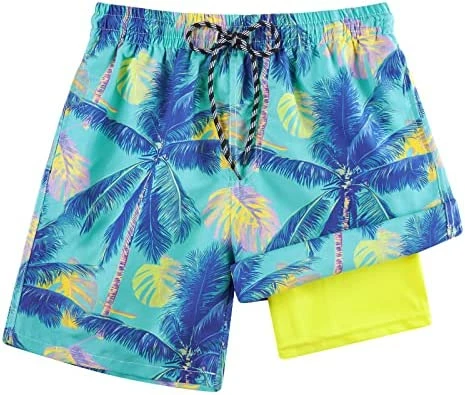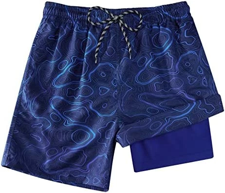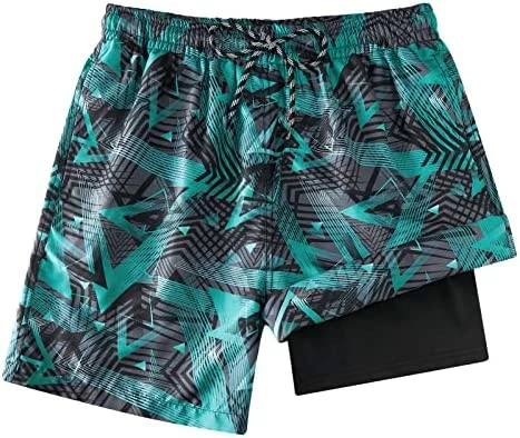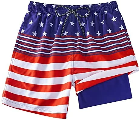 Wholesale ๐คฉ Cozople 6” Boys Swim Trunks With Boxer Brief Liner Compression Swimwear Quick Dry Swim Shorts Bathing Suits 7-20 Years Blue Star ๐