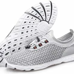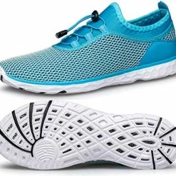 Shoes are attractive, light weight & easy to wear. Only fault I find is they do not grip the pool bottom well, I slip with them. Overall, good value & I’m pleased with them.