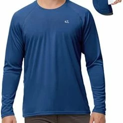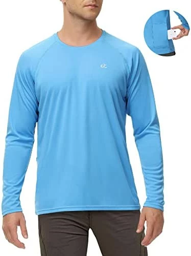 - β UV PROTECTION SHIRTS. Long sleeve design and UPF 50+ protection fabric protects your sensitive skin away from harmful UV rays. These versatile mens long sleeve t shirts with a casual fit are perfect for all kinds of outdoor activities, like fishing, hiking, sailing, swimming, running and any other of your favorite sports.