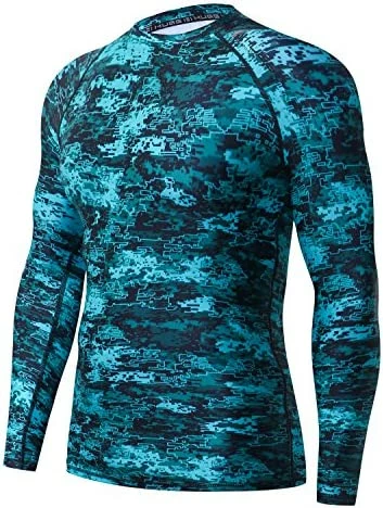 Buy ๐ HUGE SPORTS Men’s Splice UV Sun Protection UPF 50+ Skins Rash Guard Long Sleeves Sea Forest โจ