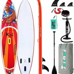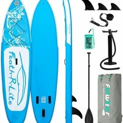- 【Design and Use】FEATH-R-LITE’s unique ergonomic handle design allows you to inflate your paddle more easily in a shorter time. The sensitive barometer ensures that you can read the sup inflation pressure value (12-15psi) at any time. The multifunctional elastic string can tightly fix any objects placed on the inflatable paddleboard. The multipurpose and ultra-large backpack can help you easily carry the paddle to any of your dream places.