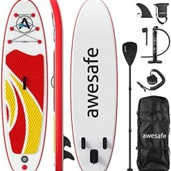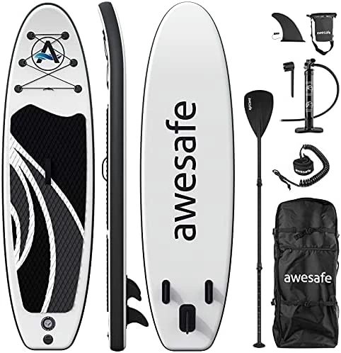- awesafe paddle boards premium inflatable paddle board is made of the highest quality military grade material, built in ultra-light Drop-stitch core for higher compressive and resile. Soft non-slip EVA form deck pad for greatly improving stability while standing. We provide the most durable lightweight board on the market, using the same materials as boards costing twice as much.