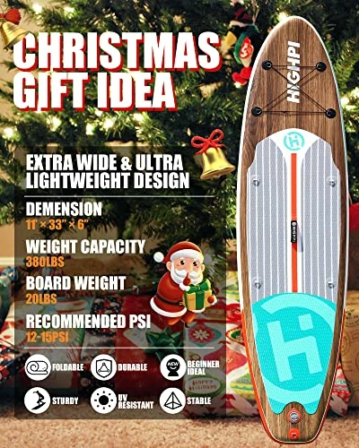 - ใWOOD GRAIN Designใ11’long x 33” wide x 6” thick, with weight capacity up to 350lbs.The extra wide SUP design is easy for beginners to stand up and keep balance. Ideal board for all skill levels with pets.