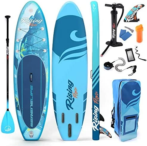 After a lot of research selected the SereneLife because it is one of the lightest weight boards in the segment as well as value for the money. I have surfed nearly my entire life, but since moving away from the beach needed an activity in the nearby lakes. It appears that they have addressed consumers previous concerns of skegs peeling away with reinforced grommets & glue and packaged with a cellophane wrap on top of the board so the the design is not transferred to other parts of the board. The dual action pump, all be it a little big and clumsy, does the job nicely, The carrying bag is a larger size, so no need to wrap the board tight light a sleeping bag when packing. For future development, would like to see a pocket to put the large skeg in and a more robust pad for the shoulder and handle straps. I am 6ft, 240lbs and it is able to support me easily without fail. Overall, I am very happy with my purchase.