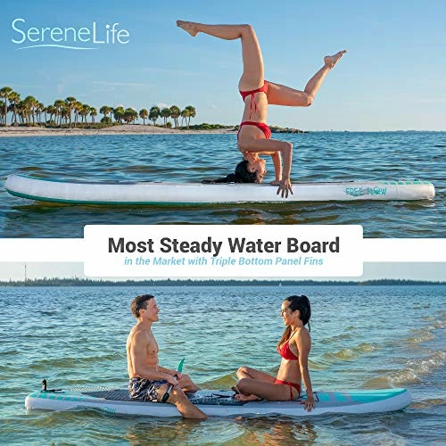 - BEST PADDLING MANEUVERABILITY: Outfitted with triple bottom panel fins, steering & handling the stand up inflatable paddle boards is incredibly easy. Offering exceptional surf control, you’ll be gliding & skimming the water like a sea creature
