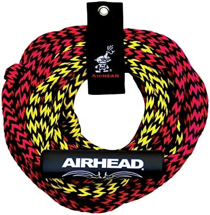 Airhead makes a great quality product line and this rope is up there with the rest of them. Great thickness , adjustable and very little give. Loops on each side makes it super easy to attach. The colors stand out in the water. Tip to tip this is an excellent option to pull your tube.