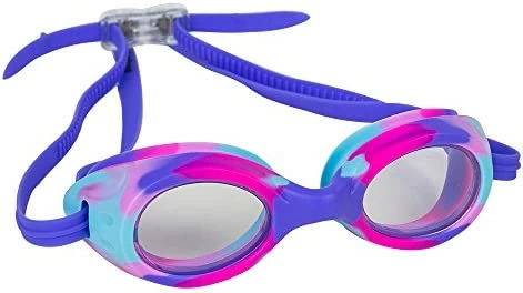 - AN ADORABLE LOOK: Children and parents will love these bright, fun junior goggles. Choose from tie dye purple or blue, or the neon green or teal. Perfect for swimming lessons or a day at the beach.