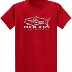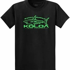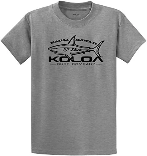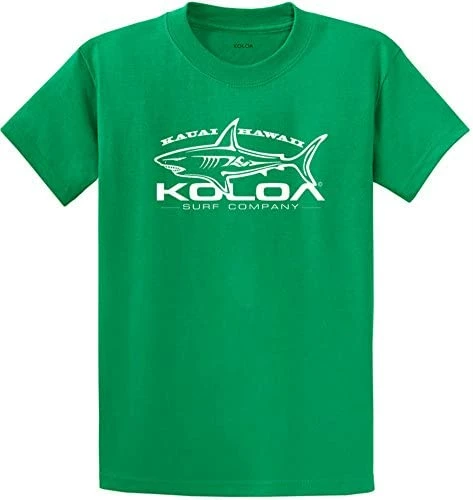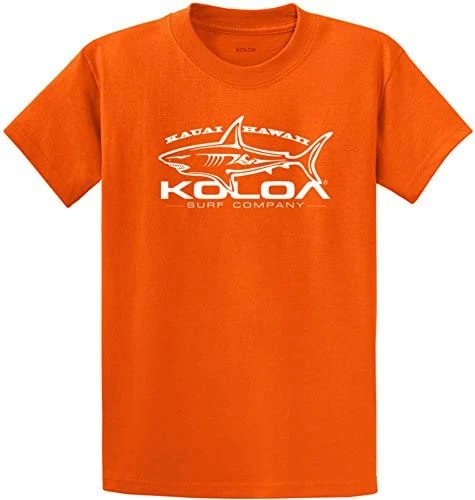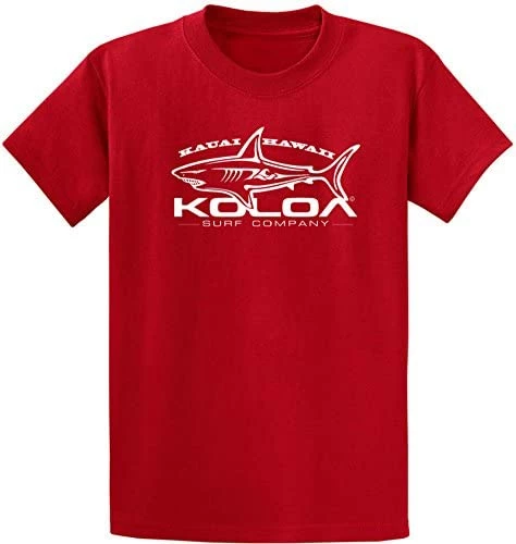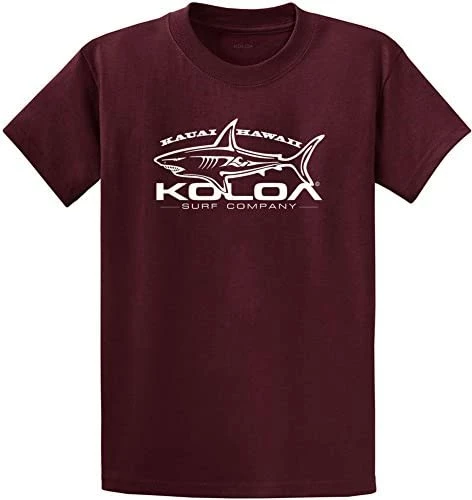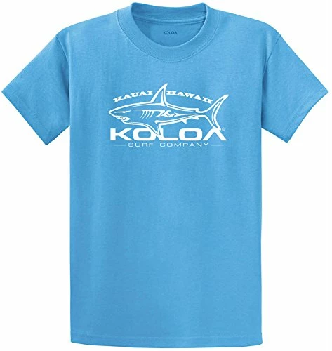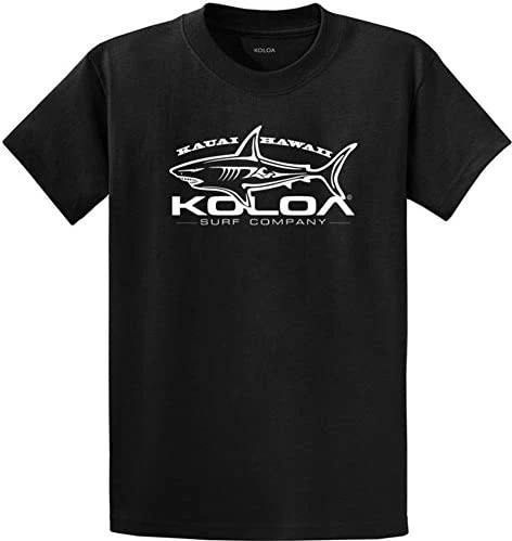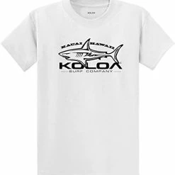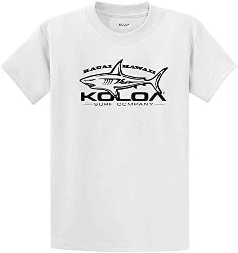 Koloa Surf Great White Shark T-Shirt. Mens Heavyweight 6.1-ounce, 100% soft spun cotton T-Shirts in Regular, Big and Tall Sizes. A reliable choice for comfort, softness and durability. Koloa Surf Co. Logo printed on front of shirt