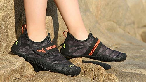 - COMFORTABLE FEELING: Fabrics uppers are breathable and have stretch, give feet flexible and comfortable feelings. Smooth designed neck could reduce chafing when kids wearing our water shoes.