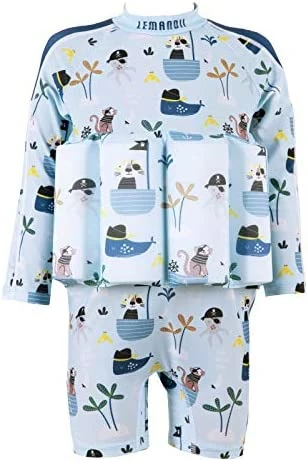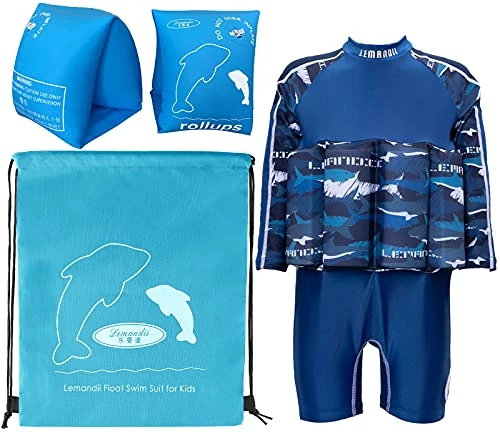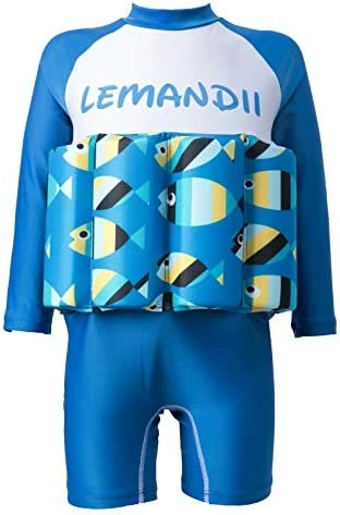 4 reviews for Budget 👏 Lemandii Long Sleeve Float Swim Suit For Kids Boys One-Piece With Adjustable Buoyancy Back Zippers Cropped Little Blue With 8 Removable Float ⭐