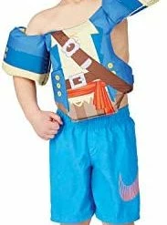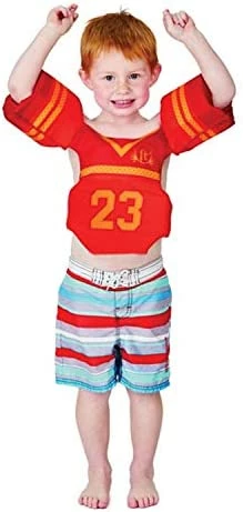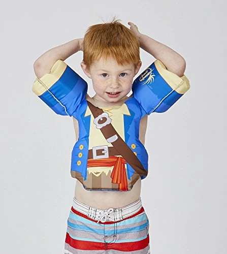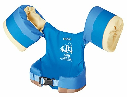 Just had to buy this pirate version for our son! We already had this pink princess version for my daughter (35 lbs) and it was a game changer! She hated the traditional style we had for her, it was challenging for her to move and feel in control. Our daughter went from crying and clinging to us with the traditional life vest on because she just couldnโt maneuver well and would either end up with her face in the water or on her back like a turtle. The great thing about this life jacket (puddle jumper) is that the front vest part comes lower than a puddle jumper brand giving the kids a little more support and naturally turns them on their backs. Our son is super excited that he is now big enough to wear one of these as well. The only down side we have found is that the back strap is starting to slip off of the padding on one side. Not sure if itโs just because our daughter plays hard in it, or if itโs just naturally slipping and starting to stay off the pad. Daughter hasnโt mentioned any pain or annoyance (yet) but I noticed it the last couple times she has worn it that itโs fairly consistent now. By the way we go boating every weekend and frequently during the week so these get worn a lot.The weight range for these are 30 lbs – 50 lbs.Fit Chest sizes 20โ to 25โThey ARE U.S. Coast Guard Approved!Not to be used on PWCโs or boats longer than 40โ.Not intended for towed sport use, use caution.