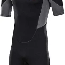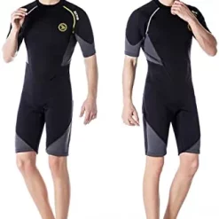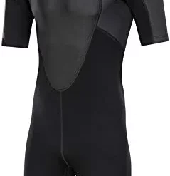 - The mens shorty wetsuit should fit snugly and tight to the body, thus to keep the body heat when in the water, you should get a ideal fit after several times uses; It¡¯s made of high quality material neoprene