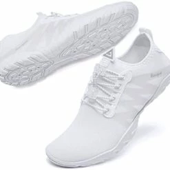 I earn my keep by being in the outdoors most of the time, and I “hike” rivers like other people hike mountains – not on the banks, but by going straight up the middle. This means that my shoes are in the water for hours/miles at a time, and are subjected to a constant barrage of mud, rocks, sticks, and other debris. In the month of July, I literally destroyed three new pairs of what one would call the classic “water shoes” – the little slip-on things with mesh uppers and rubber soles. This is not new – I have gone through countless pairs. I was logged in on Amazon, doing a search for yet another pair this week when this pair of Merrell’s popped up in the suggestions. I just about fell out of the chair when I saw the price, but after a quick calculation, I realized I was spending at least this much in disposable water shoes over the course of every summer, so I gave it some serious consideration.My feet are fairly wide, and as a result, I normally shy away from women’s shoes and buy boys instead. However, I noticed that one of the other reviewers mentioned that these had a pretty wide toe box, so I decided to take the chance and order them.My UPS guy delivered them as I was loading my kayak on the truck yesterday evening – couldn’t have been better timing – I was headed up river a few miles, taking the kayak along to tow my stuff, and I was prepared to go barefoot, which works, but sometimes results in a bruise or two. I pulled them out of the box and was impressed with the design – sturdy, but lightweight. I then put them on and was equally impressed wit the arch support (I have high arches – it felt really nice). Then I walked across the floor, and much to my delight, I could feel the air moving through the mesh, cooling my feet. So far so good – it was time to head to the river.Upon entering the water, the shoes (of course) immediately filled with water, but very little sand/gravel. As I made my way up river, I was amazed – a lot of the rocks are slick with moss and sediment, but I didn’t slip. And not a single “OUCH!” as I made my way through fast water where I couldn’t see the bottom – normally this means coming down hard on a rock at least once, and although I’m sure I did, I never felt the first twinge of discomfort. Slogging through sandy areas resulted in a small amount of sediment in the shoes, but not enough to be uncomfortable.Upon my return back down river, I took the shoes off to rinse them out. That was easy – they didn’t capture and hold on to sand/gravel like the other ones did that I had been wearing. I also noticed that they float – an added bonus should one get away from me. I inspected them carefully for signs of destruction – normally after only one trip, the cheaper ones will show cracking on the bottom and at least a few tears/loose threads. Nothing was wrong with these – nada. I put them back on and climbed the muddy hill to the truck – they had great traction there, as well.All in all, I am EXTREMELY pleased with this purchase. The shoes not only perform exactly as I needed them to in the water, but they are actually REALLY comfortable. We still have a fair amount of summer left here in Virginia, and I will be putting them through their paces for quite a while longer. I will update my review toward the end of the season.I paid full price for these shoes and did NOT get them at reduced cost or for free in return for a review. ๐