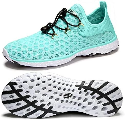 I love how the shoe fits and the features of the bungee cord to adjust the tightness. I also really like the sole of these pool shoes. I know I can walk around in them in the pool, and I am not going to slip. They are lightweight and breathable, but they do not dry that quickly. That is why I took off one star. Given their mesh material I thought they would dry faster. I have left them out in an area where they would easily get air to dry and they don’t. This was one thing I was looking for in my pool shoes as I use them daily. They say you can’t put them in the dryer so often I would be putting on damp pool shoes the next day. I am definitely keeping them for all the positive things, but I wish they dried faster.