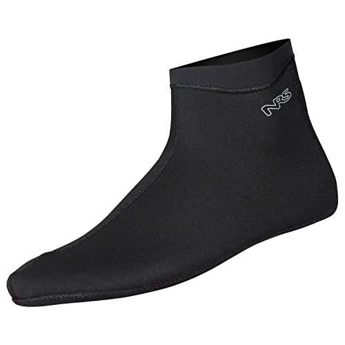 NRS Sandal Socks – Sandal Socks by NRS are a perfect solution for cold feet. They are made from a 2 mm neoprene with titanium-laminate adhesive that adds maximum warmth with minimal bulk. A HydroCuff opening creates a comfortable seal around your ankles, while the three-panel construction is comfortable and fits well into shoes and sandals. Anatomically shaped left and right feet offer superior fit and unmatched comfort while eliminating the guessing game, and pairing snaps help prevent you from hitting the river with only one sock. Wear NRS Sandal Socks with a pair of sandals or sneakers to add extra warmth without the bulk of a full size wet sock.