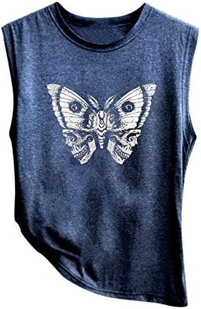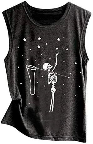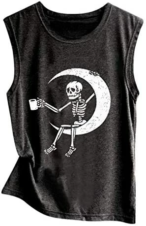 8 reviews for Outlet ⌛ POTO Tank Tops For 👩 Women, 2021 Vintage Graphic Tees Skull Print Sleeveless T-shirts Casual 🌞 Summer Beach Workout Blouses K12-blue ⭐