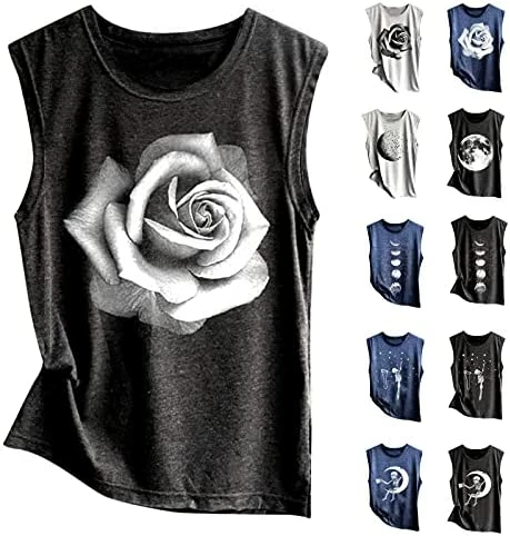 - 【Soft Tank Tops】: 95% Polyester + 5% Spandex. Skin-friendly, lightweight and ultra soft fabric for all-day comfort wear and durability. ♥ Sleeveless tunic tops for women plus size, summer t-shirts for women 2021, funny cute tank tops for women, nature graphic printed tees, casual summer cotton tank tops for women loose fit, relaxed cami tank tops shirts, yoga workout shirts, cozy cami blouses.