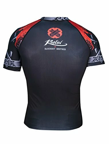 - Ronin Blackout Samurai Ghost Rash Guard – Short Sleeve Polyester/Spandex blend – durable, stretchy and wickers moisture