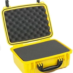 Very high quality case! Heavy duty! The other reviewers who said this are not kidding. It also has an air pressure release hole under one of the latches, that seals with an o-ring.The foam has pre-scored lines approximately 1/4″ by 1/4″, so you can cut columns of foam away easily using an exacto knife. You have to “excavate” the depth of the cutout for the equipment you wish to store in this box. There are no pre-scored lines at different depths into the foam. What I used was a straight edge razor blade, like for a paint scraper, held perpendicularly in the jaws of needle nose pliers. That gave a nice smooth “floor” to the cut out.I am extremely pleased with this purchase.
