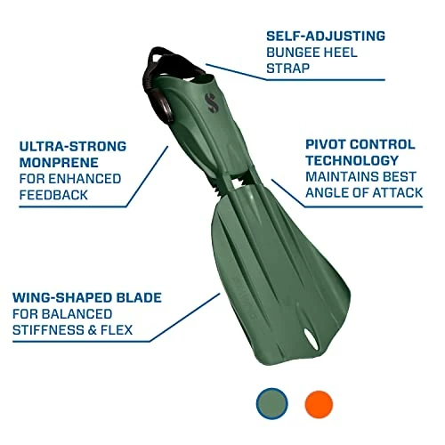 I adore these fins so much! These Springy orange speedsters are super navigable. I got them for scuba, but condition with them in a lap pool often. I swim in a happy fast barrel rolls and troll along the bottom swimming backwards watching the surface. when a life guard gets too close I can pop up and launch a couple gallons of water several feet in a magnificent splash because the spring hinges give me serious oomph! Haven’t gotten kicked out of the pool yet and having and amazing time with theses excellent fins.