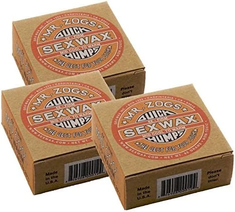 Sexwax Quick Humps surfboard wax formulas are the “go to” choice for professional and experienced surfers around the world, now packaged in recyclable paperboard boxes. This new package is easy to open and can be reused to keep your leftover or partially used wax clean in its original package. Find the ideal balance between stability and stickiness by utilizing these formulas alone or as part of a Basecoat/Topcoat combination. For futher tips on formula selection see the Quick Humps/Dream Cream User Guide. Quick Humps / Dream Cream User Guide. TEMPERATURE INFO: 1X — X-COLD to COLD 58°F / 14°C, 2X — COLD TO COOL 48°F to 68°F 9°C to 20°C, 3X — COOL TO MID WARM 58°F to 74°F 14°C to 23°C, 4X — MID COOL TO WARM 64°F to 78°F 18°C to 26°C, 5X — WARM TO MID TROPIC 70°F to 84°F 21°C to 29°C, 6X — TROPIC 78°F / 26°C & ABOVE