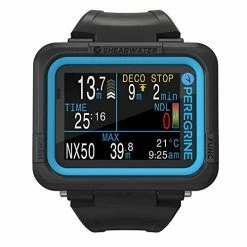 Embark on your adventure into diving with Shearwater. The Peregrine is a simple and easily accessible, full colour, multi-gas dive computer. With the Peregrine we simplified operations and made a computer that is easy to use for divers of all experience levels. The Peregrine is your ideal companion for many adventures to come. Multi Diving Modes There are 4 diving modes: Air (For recreational diving) Nitrox (Single gas up to 40%) 3 Gas Nitrox (Up to 100% O2) Gauge (Depth, time, resettable stop watch function) Simple and Powerful The Peregrine has a full colour 5.59 cm LED LCD screen with vivid, enhanced colour range and saturation display. It has simplified recreational diving modes with full decompression support. The diver can easily navigate and customize important diving information displayed on the home screen. Shearwater dive computers never lockout for dive plan deviations. The Peregrine is best suited for Air and Nitrox divers that want a great screen at an exceptional value with a simplified feature set. User Customizable Display – Customize your display with information important to you. Wireless Charging – Battery life per charge is up to 30 hours on medium brightness level. USB wireless charging station is included. Multiple Languages – Languages include: English, French, Simplified Chinese, Traditional Chinese, German, Portuguese, Korean, Japanese, Italian, Italian and Spanish. In the Dive Log menu, a diver can quickly view detailed graphs and dive information such as a dive log list, water temperature changes, depth, start and end time, surface interval time and more, all easily available at the diverβs fingertips. The Peregrine has a quick NDL planner and intuitive DECO planner that divers can use to plan their dives. The decompression algorithm that Shearwater uses is the BΓΌhlmann GF algorithm. Cloud Control Divers can easily link their Peregrine dive computer via a bluetooth connection, allowing them to share informa