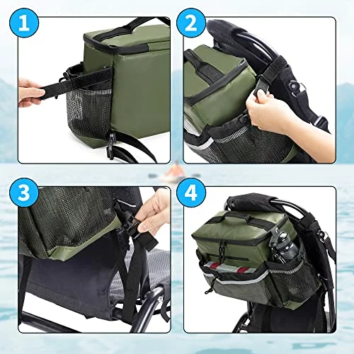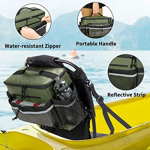 - [ Compatible Kayaks ]: The cooler bag behind seat is compatible with kayaks with lawn chair style seat. No additional installation accessories are required, just attach it to the seat back by adjusting the webbing and snapping the buckles on the bag back.