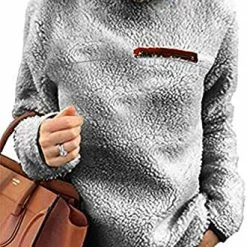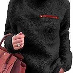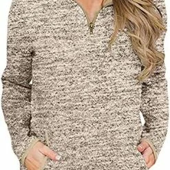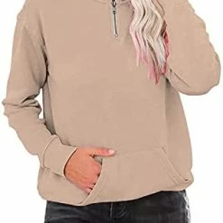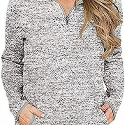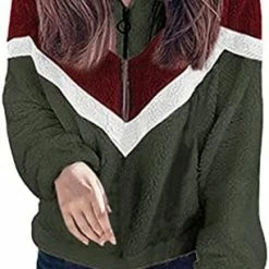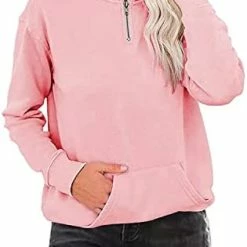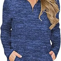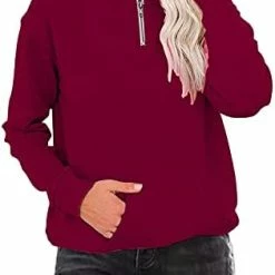 Coupon π SNKSDGM π© Women’s Long Sleeve 1/4 Zipper Sweatshirts Casual Warm Lapel Zip Up Loose Pullover Tunic Tops With Pockets Activewear Qc1- Ze6-wine π₯