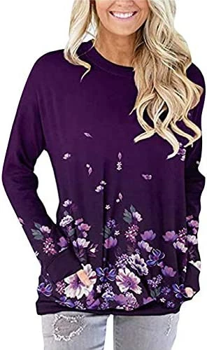 Buy ๐ SNKSDGM ๐ฉ Womens Crewneck Sweatshirts With Pockets Casual Loose Fitting Long Sleeve Graphic T ๐ Shirts Pullover Jumper Tunic Tops 21ab – E6 Purple ๐งจ