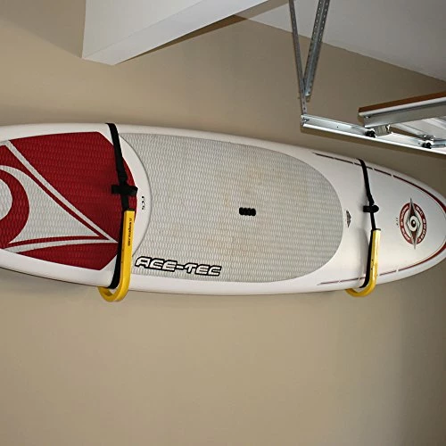 Easy to install, looks great and gets large paddle board out of the way till you need it. If you want to keep paddle board out of the way and make your garage uncluttered, buy this.