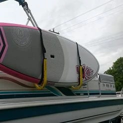 - Safety straps securely hold your stand up paddleboard or surfboard in place