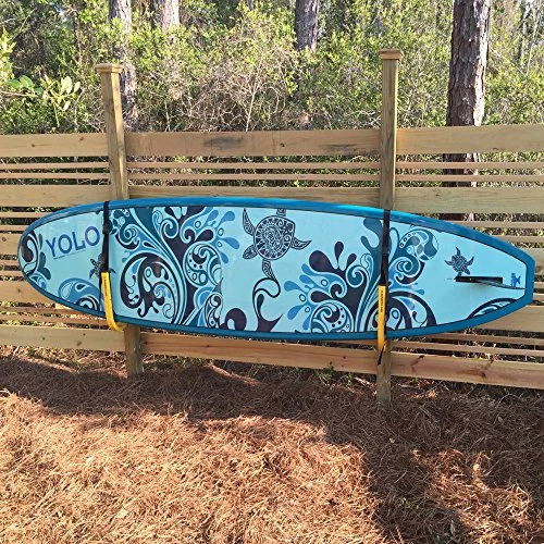 This is not for a Kayak. Unless your kayak is 12″ in profile. It is for a SUP or surfboard to be securely tightened down. I have mine outside on my dock that has high winds at times. It is easy to install with the correct tools. The comments from the person saying it is too hard to put in the screws had this difficulty because they did not use a phillips extension (at least 7 inches) to get the proper angle on the head.** Review after almost 2 years outside on a freshwater lake dock – The rack for my paddleboards is holding up well and used many times per week to put on and off the paddleboards. Its very sturdy and the straps are holding the boards in high winds well. The bolts that are used as the holders of the straps are standard carbon steel however, and they are rusting. If this was in a salt environment, I suspect that there would be much more rust. I am very satisfied with this, and the other model that holds my kayaks. Dont assume that this is a kayak holder, because the name is wrong. It will not hold a kayak.