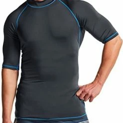 I have purchased and returned so many rash guard shirts. I like the shirt so far. It fits snug enough where It isn’t embarrassingly tight. I like the fact that is smaller around the neck area, that prevents the shirt from being stretched out and looking droopy when wet. Delivery on this item was fairly quick.