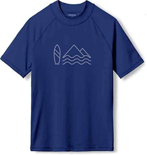 Buy 😍 TSLA UPF 50+ Youth Kids Rash Guard Short Sleeve, UV/SPF Surf Swim 👕 Shirt, Aqua Water 🩱 Swimsuit Top Short Sleeve Print Rashie Navy & Aqua 🥰