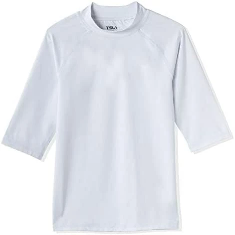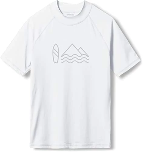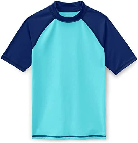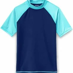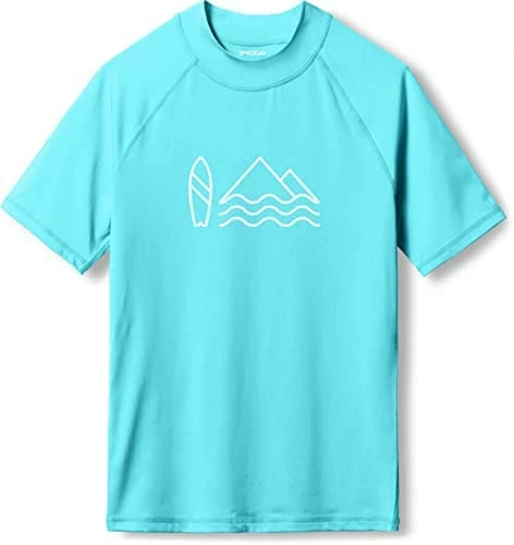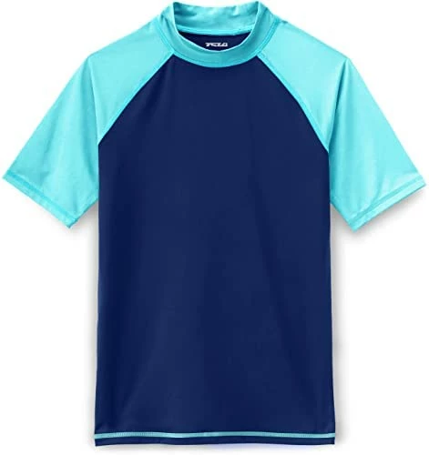 8 reviews for Buy 😍 TSLA UPF 50+ Youth Kids Rash Guard Short Sleeve, UV/SPF Surf Swim 👕 Shirt, Aqua Water 🩱 Swimsuit Top Short Sleeve Print Rashie Navy & Aqua 🥰