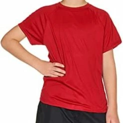 The red is a bit darker than the red I was trying to match. It also fits rather big for my son who wears the same size t shirt. I expected a rash guard to fit kind of slim.