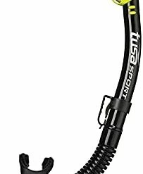 The USP250QB dry snorkel features TUSA Hyperdry Elite dry top technology (pat p) that stops water from entering into the snorkel, a drain chamber and purge valve for easy clearing, and silicone mouthpiece.