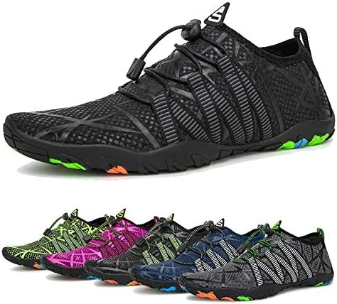 - GOOD ELASTICITY AND STARDARD FOOT MODELS: Breathable and smooth fabrics with fine stretch on uppers, flexible and comfortable. Smooth designed neck prevents chafing when wearing our water shoes.With an ergonomically molded and standard foot models, Perfect wrap your feet!