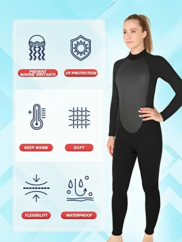 - Womens wetsuit 3mm full body designed for surfing, snorkeling, diving and boarding etc