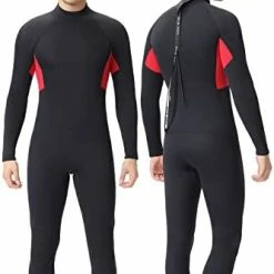 I bought this for some cold water canyoneering, and it performed very well. I am 5’9″ 145 pounds and fits mostly very well. It’s a little short in the legs, and a little baggy around the shoulders and arms. I have a very thin athletic body type that doesn’t quite match up with clothes super often so I didn’t expect it to fit perfectly, but it’s close enough for me to be happy with it. For the price, I’m quite pleased with the quality. The thick rubberized knees and chest/belly area is probably great for surfing. It does add friction on rocks as I squeeze past them, but it doesn’t really bother me much. It adds some toughness which I can appreciate.The only other complaint I have is that the neck is really tight for me, but I’ve found that’s true for just about every wetsuit I’ve owned or tried on except the V neck jacket or vest types.