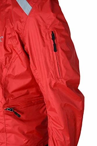 Bought this splash jacket for a high water rafting trip in the North West. It was superb.Fit: weigh 200 lb, 6′ 0″. broad shoulders and long arms. The XL was perfect. It was cold weather. Underneath I wore a long sleeve fleece, a farmer john wetsuit, another larger fleece and the jacket overtop. Lots of water over top, I was dry as a bone underneath. MINIMAL sweating/ inside condensation. Will be great for cool weather wet sailing. Waist and sleeves and neck were waterproof.wife got same jacket. Thin 125 lb, 5’8″. medium fit her well with same undergarments.Pocket in sleeve was very handy for a little camera.Would recommend strongly. Great for rafting!!