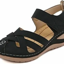 - Closed toe sandals summer casual sandal,hook&loop design and arch support,fashion and comfort.