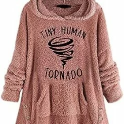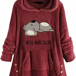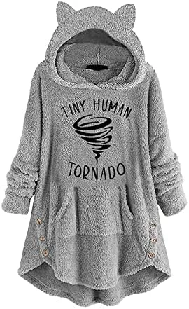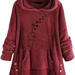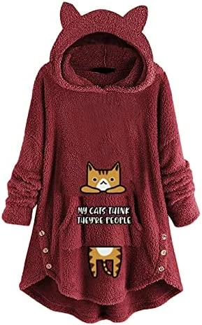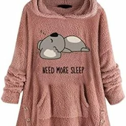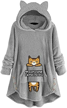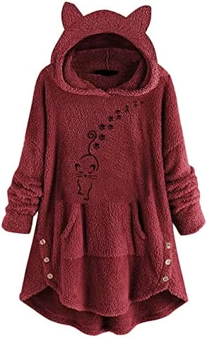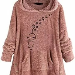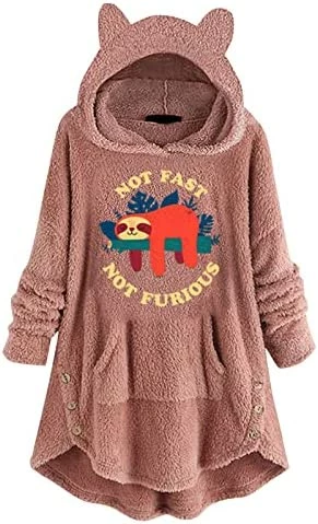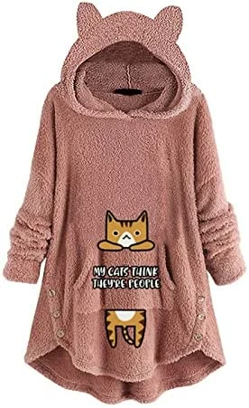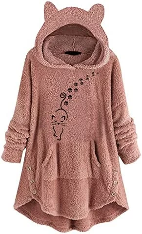 Coupon 🛒 Womens Cat Ears Oversized Hoodies 🧥 Coat Fuzzy Button Hooded Sweatshirts Sherpa Fleece Pullover Sweaters Fluffy Outwear Zfcfcfc-a031-2-pink 🥰